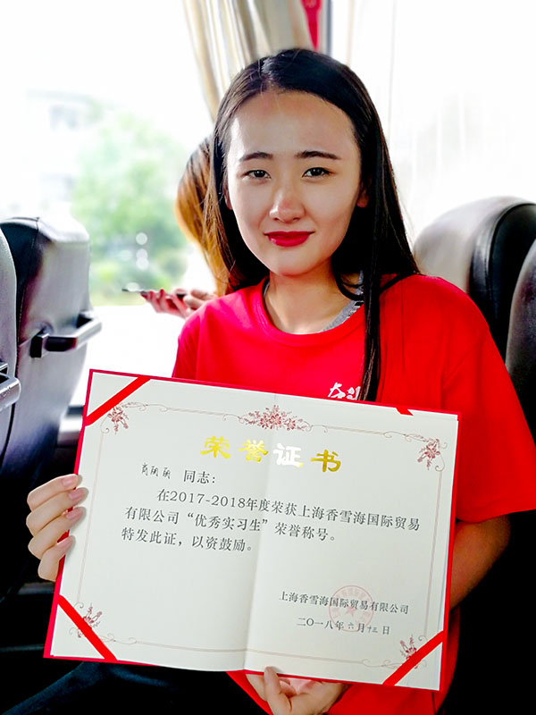 经济贸易学院2015级商务管理2班肖丽丽也被评为优秀实习生