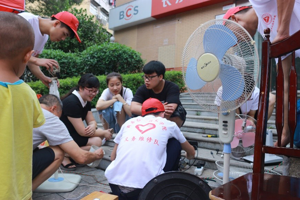 义务维修活动受到了社区居民的热烈欢迎,送修者络绎不绝。志愿者们共收取需维修电器130余件,其中修好复原100余件,主要是电吹风、电风扇、排插、电热水壶等家用小电器。志愿者们分工合作,组织有序开展,先由专人登记送修电器名称、故障、送修人及联系方式,再由专业维修人员进行检测维修,最后登记维修情况并反馈给居民。天气炎热,志愿者们的爱心更热。志愿者们不畏酷暑,头顶骄阳,汗流浃背的坚持维修,赢得了社区居民的一致好评??吹骄用衩锹獾拿嫒?,队员们的内心满是成就感?;疃诩?,志愿者们始终热情高涨,心中满是老人的期盼和孩子渴望的眼神,骄阳酷暑坚守义务维修。