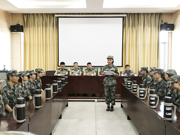 自训队指导老师,武装部干事罗永红老师在会上对学生教官在集训期间训练与生活方面的注意事项进行了强调,要求大家要切实注意训练安全、用电安全。