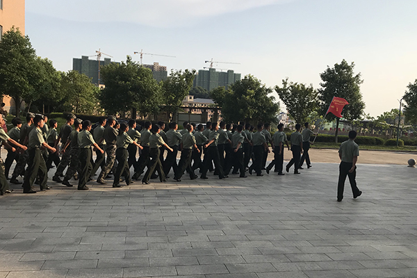 我院学生教官队自今年5月初成立以来,在武装部的统一部署与组织下,全体学生教官平时周一到周五的晚上坚持进行体能训练一个小时,周末参与集中训练。从7月16日开始,武装部对学生教官自训队开展了近20天的暑期封闭集训,其中11名学生教官被选送至省军区参加“四会”教练员集训,46名学生教官留在学校参加集训。在集训期间,军事理论与条令条例学习、素质教育、体能训练、军事技能训练、口令技巧训练穿插进行。武装部邀请校内外专家给学生教官开展了“做学员思想工作的技巧与方法、法制教育、急救知识与实际操作、如何做一名合格的学生教官”等专题讲座或培训,并组织学生教官开展了单个军人队列动作中的立正稍息跨立、敬礼礼毕、停止间转法、齐步的行进与立定、跑步的行进与立定等7个科目的训练。全体参训学生教官每日头顶烈日,克服困难,服从命令、听从指挥、不辞辛苦,全力备训。经过三个多月的努力学习和刻苦的训练,我院学生教官已初步达到军训教官上岗“四会”教练员资格要求,全院师生都期待他们在即将到来的2018级新生军训带训工作中有出色的表现,能圆满完成新生军训工作任务。