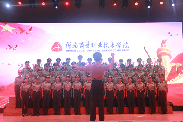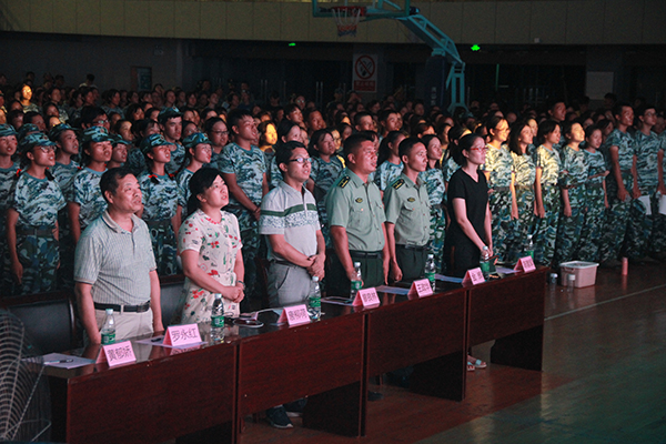 本网讯(记者 刘钰 刘妙)9月20日晚7时30分,2018届新生军歌合唱比赛决赛在校体育馆举行。军训团团长南国利剑国防教育基地副主任王政华、副校长廖良林、军训团参谋长南国利剑国防教育基地副主任金辉、学工处处长唐柳荷,学工处老师罗永红、陈慧军,校团委老师黄郁娇等作为评委全程出席本次比赛。
