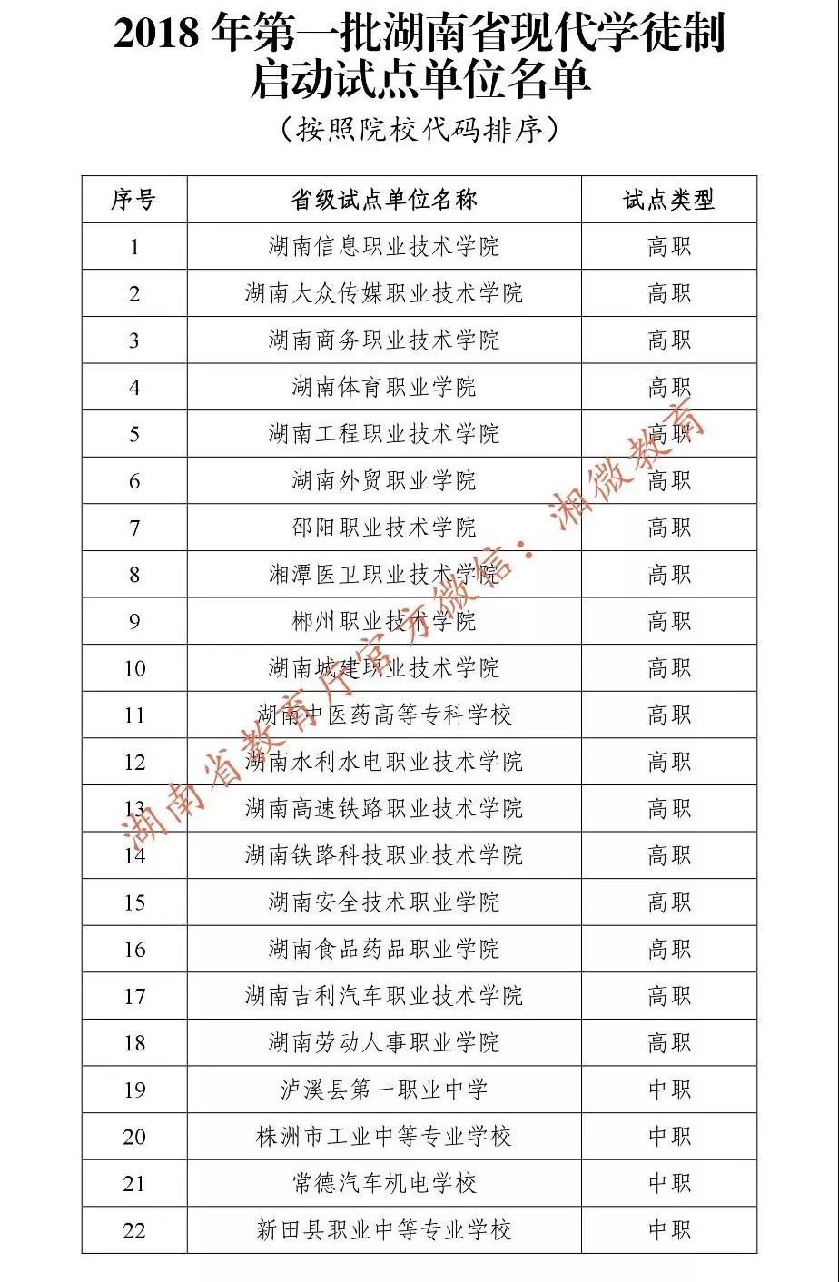 全省共有18所高职院校,4所中职学校入选第一批湖南省现代学徒制试点校。省教育厅要求各启动试点学校,按照教育厅审定公布的《实施方案》和《任务书》扎实推进工作,确保试点进度和成效;要把试点工作中的好做法、好经验及时总结提炼上升为理论,促进理论与实践同步发展。