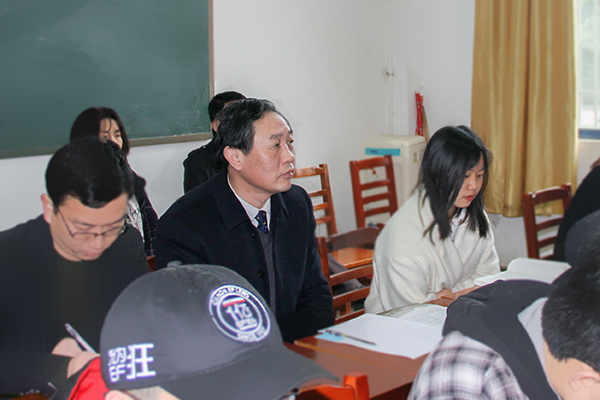 2月25日,学院党委书记周忠新和相关职能部门负责人一起听课、评课,检查教学秩序。