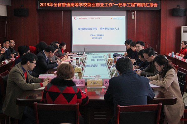 本网讯(记者 胡星 刘鑫鑫 陈嘉涛 黄佳)3月8日,由邵阳学院副院长李金成、湖南科技大学招生就业处处长蒋利平、湖南科技学院就业创业指导中心主任郑银芳、长沙医学院学生与就业工作处处长黄卫华、湖南人文科技学院创新创业学院副院长李宁、湖南省教育厅大学生就业指导中心主任科员胡媛组成的湖南省就业创业“一把手工程”专家组一行来到我校开展就业创业“一把手工程”现场考核、督查工作。