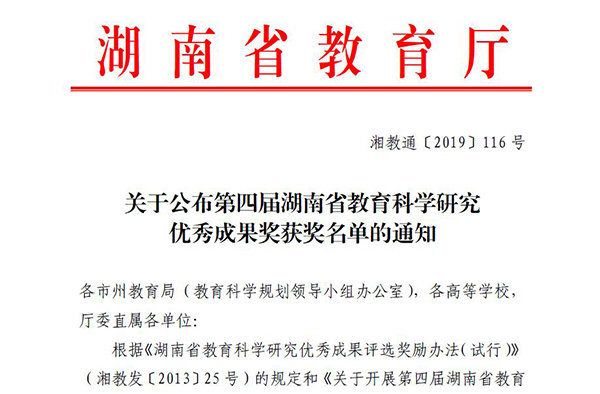 我校教师荣获第四届湖南省教育科学研究优秀成果奖