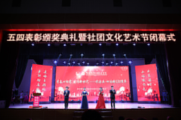 社团文化艺术节闭幕式的第一个节目是由校团学会带来的朗诵《我骄傲我是中国人》,他们用饱满的激情诉说祖国的伟大,用一腔热血歌颂对祖国的热爱。紧随其后的是青年志愿者协会带来的话剧《恰同学少年》,他们感情饱满、气势铿锵,以青年学生的身份将五四精神展现得酣畅淋漓,迎来现场一片欢呼。