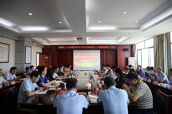 本网讯(记者 陈嘉涛刘鑫鑫)5月23日9时45分,长沙市岳麓区人大常委会主任胡杰夫,区人大常委会副主任王剑鸣、林俐俐、曾跃平、江南、张淳等一行19人来到我校开展促进就业工作视察。