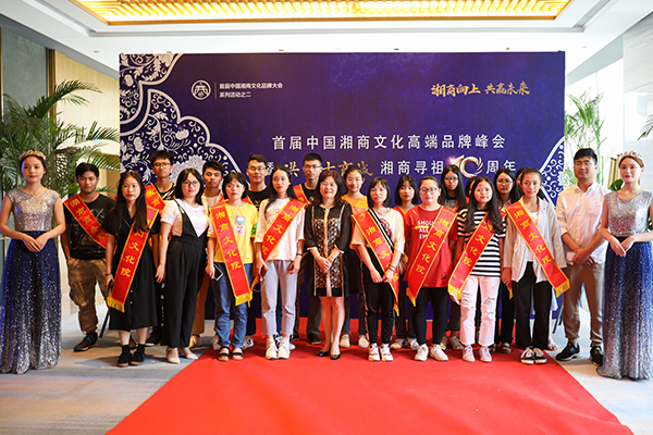 ▲5月28日,首届中国湘商文化高端品牌峰会暨洪江古商城湘商寻祖10周年活动在长沙举行,我校党委委员禹明华、18电商2班全体学生应邀参加峰会。(摄影/王晶 雷梅香)