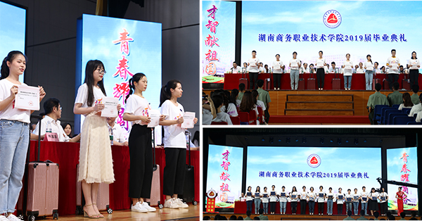 毕业典礼在雄壮的国歌声中拉开序幕。副校长杨文涛宣读了表彰147名2019届省级优秀毕业生、320名2019届校级优秀毕业生的通报,全体校领导为省级优秀毕业生颁发荣誉证书和奖品,为校级优秀毕业生颁发毕业证书。