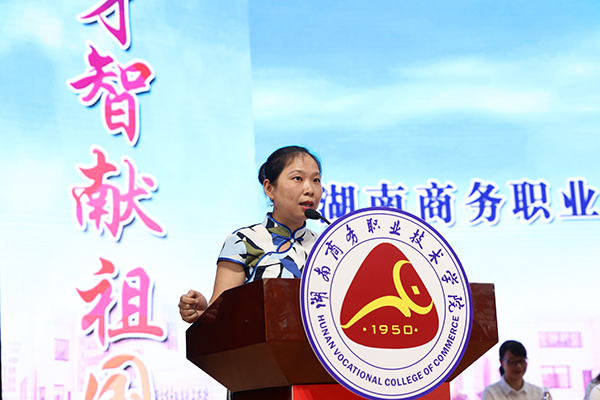 基础课部教师周妮代表教师发言,她希望全体毕业生走向社会后不要怨、不要怕、不要等,做好本职工作,以永不言败的心态面对生活中的坎坷,善于抓住机会,不负母校的殷殷期盼,不负自己的精彩人生,不负最好的时代。
