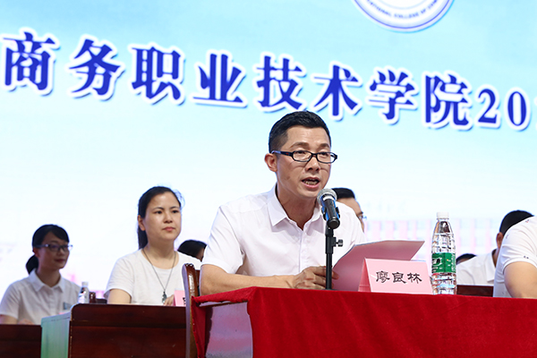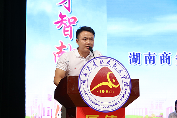 11级计算机网络技术班毕业生现已是广州闽明贸易有限公司总经理的罗旭作为优秀校友代表发言,他和在场的同学们分享了自己的艰苦创业历程,告诫同学们不要迷茫,早日做好职业规划和人生规划,不忘初心、不惧将来、勇于拼搏,早日实现心中的梦想,并祝愿母校继续蓬勃发展。