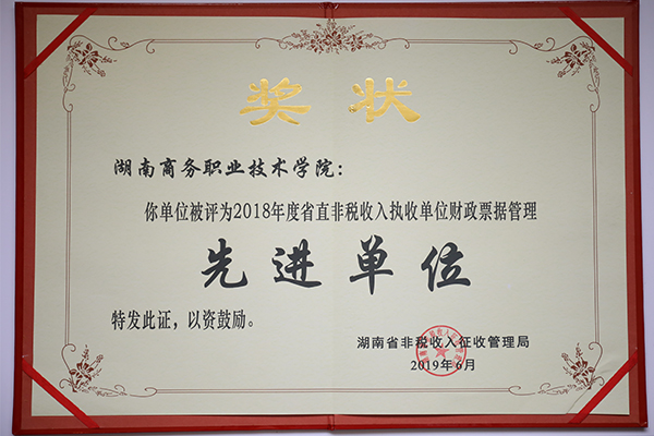 湖南商务职业技术学院荣获2018年度湖南省财政票据管理先进单位称号