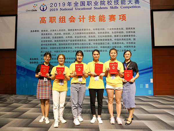 ▲2019年会计技能国赛一等奖指导老师和参赛学生合影