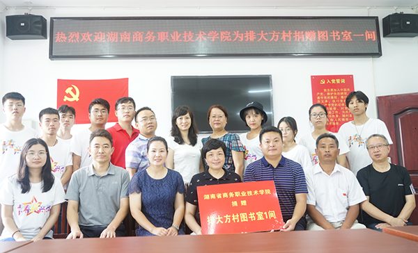 7月17日,湖南商务职院校长李定珍教授、办公室副主任李琦、审计处副处长毛玲、电商学院院长曾鸣、湘茶学院院长易能一行来到排大方村,为村里捐赠图书室一间。在捐赠仪式上,李定珍表示,我校已紧跟国家“精准扶贫”、“乡村振兴”政策,对湘西自治州开展特色扶贫助学、助农工作,今年学校举办了两个“民盟•同心班”,招生专门面向湘西应届高中毕业生,尤其是排大方村的贫困学子。