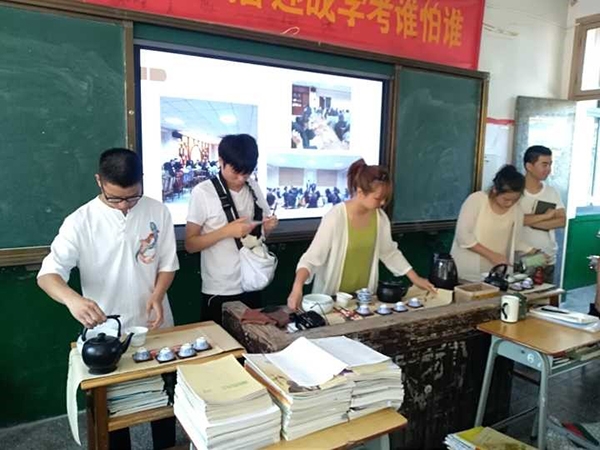 安化县烟溪镇位于雪峰山脉峡谷地带的中段,当地居民自古以来以种植和制作红茶为生。该镇山多田少,世界上85%的堪称茶土之王的冰碛岩土壤都集中在此,现有高山茶园约3.8万亩,拥有QS质量认证体系的茶企9家,小型茶叶加工厂10多家。志愿者们先后采访镇长、参观茶企和访谈茶农,了解到烟溪红茶的历史、品质、现状和展望,共同探讨品牌的推广途径、公司经营模式等,通过对红茶、旅游、红色文化的整合,打造“园中有茶,茶中有园”的体验式“旅居”发展模式,让旅游产业与烟溪茶业发展紧密结合。志愿者们在访谈中得知茶农每年都会有机会免费参加2-3次由政府举办的茶叶栽培技术的培训,针对贫困茶农政府会还给予一定的经费补贴,茶农们都说党的精准扶贫政策都已落到实处。志愿者们还为安化五中的准高三学子上了一场生动的茶文化课,教大家怎样识茶、品茶、爱茶,红茶茶艺表演更是拉近了彼此之间的距离,五中学子表示一定要勤奋学习走出大山,努力把家乡的红茶产业发展壮大,传承弘扬中国悠久的茶文化。