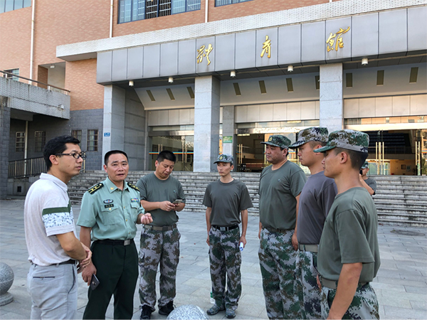 廖良林副院长向省军区军训办领导汇报了我院第二届学生教官自训队培养培训的工作情况,并向冒着酷暑受邀来我院指导学生教官集训工作的省军区军训办的领导表达了诚挚的感谢。