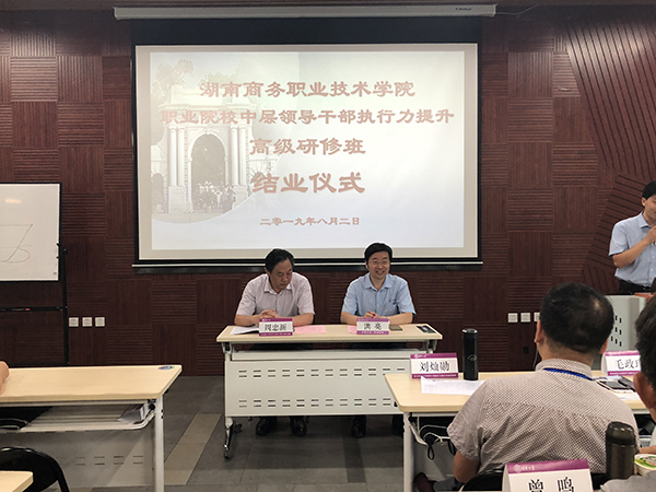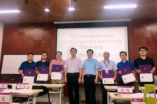 周忠新首先对清华大学基础工业训练中心的精心组织与安排表示感谢,对大家的顺利结业表示祝贺。他说,培训有结束,但工作没有终点,大家要将此次学习所获融会贯通,运用到今后的工作中,争取取得事半功倍的效果。周忠新对全体学员提出了三点要求,一是牢记初心使命,坚定信仰信念信心。当前,全国正在开展“不忘初心,牢记使命”主题教育活动,根据省委统一部署,我校也将于下月启动。习近平总书记说,中国共产党人的初心和使命,就是为中国人民谋幸福,为中华民族谋复兴。我认为,我校干部的使命就是为教职员工谋幸福,为学校建设发展做贡献。心中有信仰,脚下才有力量,今年我校提出了争创中国特色高水平高职学校和高水平专业群,以及创建应用型本科的目标,作为学校中流砥柱的干部,必须仰望星空、脚踏实地,怀揣信仰,坚定信念、充满信心,为实现既定目标,实现中国梦?商务梦而不懈奋斗。二是牢记身份天职,坚持负责守责尽责。我们既是学校干部,也是人民教师,以教书育人为天职,被誉为“人类灵魂的工程师”,培养社会主义接班人是我们的责任,这就要求我们既要牢记的“四有”好干部要求,也要遵从“四有”好老师要求。坚持把“立德树人”作为根本任务,立足岗位作奉献,用心服务出实效,学习清华“行胜于言”的校风,努力培养出更多的高素质技术技能型湘商人才。三是牢记忠诚担当,扎实做人做官做事。湖南商务职院的干部,要忠诚于党,忠诚学校,忠诚师生,要能担当,敢担当,会担当。做人,要以德为先,以诚为根,以善为贵,拥有崇高的师德,端正的品德,高尚的道德,为做好育人之人而努力;做官,要以师生为本,以正气为先,以纪律为则,一心为民,秉公办事,即对自己负责,也对师生负责,同时处理好工作与生活的关系,感情与原则的关系,权力与责任的关系。做事,要以谋为基,以实为重,以智为要,高站位虑事,高水平谋事,高效率办事,高风格处事,真正推动学校的建设发展。