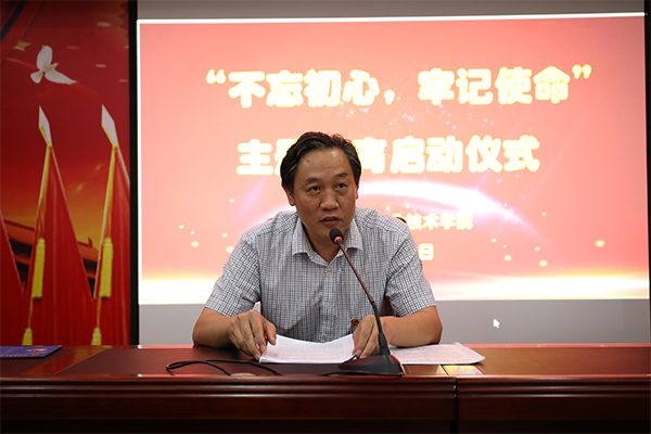 本网讯 (通讯员 杨路平)9月6日,我校举行“不忘初心 牢记使命”主题教育启动仪式,党委书记周忠新,纪委书记、工会主席林国安,副院长廖良林,党委委员禹明华出席,各党总支、党支部负责人共30余人参加。仪式由纪委书记、工会主席林国安主持。