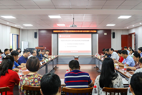 会上,组长朱厚望代表专家组通报了质量诊改复核意见。他表示,经过7天的网上复核和2天的实地复核,通过听取专业层面、课程层面和教师层面的诊改工作汇报,与校领导、专业负责人、课程负责人、学生及相关职能部门负责人进行座谈交流和个别访谈等,全面了解了商务职院的诊改工作推进情况。专家组充分肯定了学校在内部质量保证体系诊断与改进工作中所付出的努力,一致认为商务职院各项质量诊改工作推进扎实有序。一是认识深。学校党委、行政高度重视质量诊改工作,从制定实施方案到健全运行机制,党委班子站得高、看得远,目标链打造清晰,事业发展规划、专业课程建设规划、教师队伍建设、学生成长规划、校园信息化建设、科研等系列目标打造非常完整。师生上下对质量诊改的认识、理解有了大幅提升;二是效果实。目标链打造着眼学校改革发展需求,契合学校实际,具有很强的科学性、系统性、合理性;岗位工作标准、专业和课程标准等标准链有力有序推进;专业、课程、师资层面建设有力有效,人才培养质量显著提高;文化育人特色鲜明,湘商文化底蕴深厚。针对学校诊改工作存在的问题,他表示,人才培养质量是学校的生命线,学校一切教育教学改革最终都要落在人才培养上,要充分利用好质量诊改这股东风,作为推进人才培养质量提升的重要抓手。他希望,学校能进一步深化质量诊改的认识,重结果更重过程,继续常态化开展质量诊改工作,全面建设质量文化,牢固树立人才培养质量意识,切实提升人才培养质量水平。