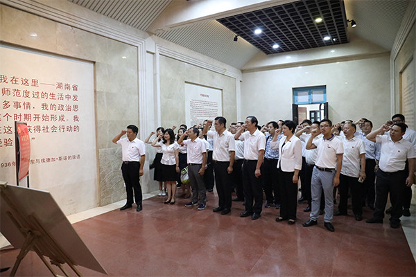 本网讯(记者杨路平 胡星)为“明初心、守初心,坚定理想信念”,9月26日下午,我???ldquo;不忘初心、牢记使命”主题教育第一次参观见学活动,校党委书记周忠新、校长李定珍等班子成员、中层干部正职(含主持工作的副职)、各党总支书记、党支部书记一行人走进“毛泽东与第一师范”纪念馆,寻访毛泽东求学之路,近距离感受一代伟人的政治抱负和革命理想。