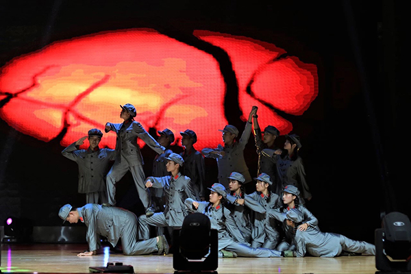 晚会在校舞蹈队带来的《红色畅想》中拉开序幕,伴随着动听的音乐,舞者们以优美的舞姿,迅速抓住观众眼球,引得现场喝彩声不断。接着由商务信息技术学院带来的舞蹈《映山红》通过情景式演绎,淋漓呈现了热血青年们为了改革图新,不惜牺牲自我的崇高精神?;峒蒲г捍吹幕熬纭缎叛觥?,剧情跌宕起伏,通过在战争年代及和平年代来回穿梭、切换的艺术表现方式,演绎了共产党人对人民群众的鱼水情深,每一幕毕,现场都响起热烈的掌声?;峒蒲г汉途逞г合嗉檀吹睦仕小陡磺啃轮泄贰ⅰ缎率贝粗泄?,以意气风发、气势磅礴的风貌生动呈现了新中国成立及改革开放四十年的辉煌历程,将现场气氛引向高潮。