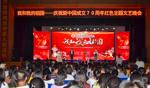 本网讯(记者杨路平 胡星)演绎红色经典,奏响时代强音。9月29日19时,由马克思主义学院主办,校团委、学工处承办的庆祝新中国成立70周年红色主题晚会在体育馆精彩上演。校长李定珍、副院长杨文涛、副院长廖良林出席晚会,相关部门负责人及两千余名师生参加晚会。