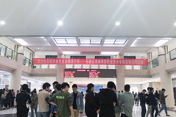 ▲10月22日下午,长沙市岳麓区就业服务进校园活动暨我校2020届毕业生首场校园招聘会在办公楼一楼大厅隆重举行。