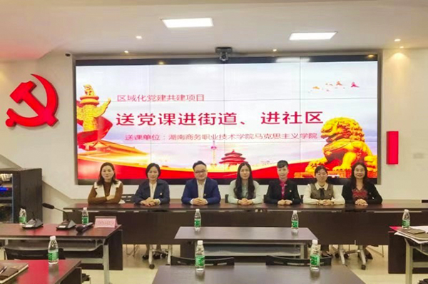 本网讯(通讯员 肖斌)为深入贯彻习近平总书记“打通理论宣讲最后一公里”的指示精神,11月15日,马克思主义学院党支部和天顶街道机关党支部、青山新村社区党支部开展联合主题党日活动,将微党课送进基层街道和社区,为基层党员群众送去了丰盛的“理论盛宴”。