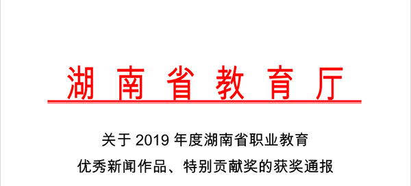 12月23日,湖南省教育厅公布了《关于2019年度湖南省职业教育优秀新闻作品、特别贡献奖的获奖通报》,揭晓了2019年度湖南省职业教育优秀新闻作品名单,我校4篇参赛作品分获优秀新闻作品一等奖、二等奖和三等奖两项。