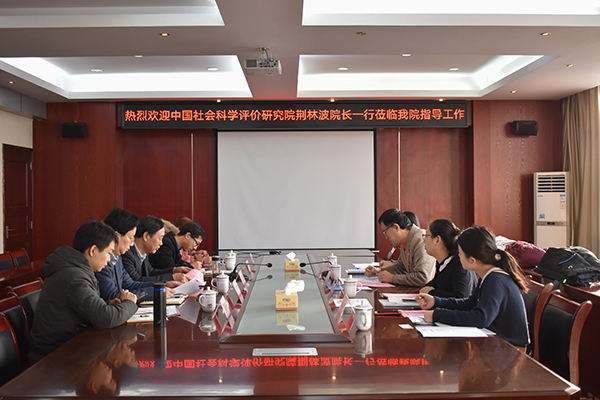 会上,荆林波围绕期刊评价、智库评价、公共政策评价、学科评价及人才评价与规划等方面介绍了中国社会科学研究院的工作内容和主要成果,并介绍了此行目的。