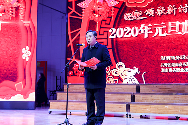 活动伊始,周忠新代表学校党委、行政作题为“担当新使命、再创新辉煌”的新年献词,向全体师生员工表达了诚挚的问候和感谢?;厥?019年,周忠新指出学校以政治建设为统领,党的建设展现新作为;深化教育教学改革,人才培养达到新高度;实施人才强校战略,师资建设彰显新成效;聚焦社会行业需求,服务能力得到新提高;坚持以问题为导向,民生工程有了新变化。2020年是全面建成小康社会和“十三五”规划收官之年,建校70周年。他强调,要全面深入贯彻党的十九大精神,坚持以习近平新时代中国特色社会主义思想为指导,以更加饱满的热情、更加主动的态度、更加进取的精神、更加高度的使命感和责任感,深化学校内涵式发展,加快建好卓越、力争三升建设步伐,共同谱写商务的瑰丽华章。