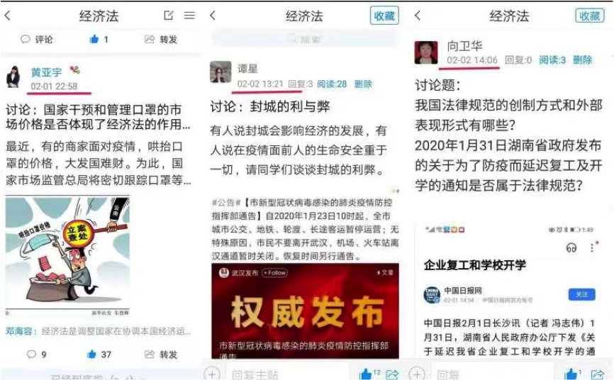 “最近,有的商家面对疫情,哄抬口罩的价格,大发国难财。请同学们结合经济法理论举例说明,国家干预和管理口罩的市场价格是否体现了经济法的作用?”为深入贯彻教育部和省教育厅“推迟开学不停学”的指示精神,2月1日,我校黄亚宇芙蓉教学名师工作室率先推出了《经济法》春季线上精品课程,广大师生通过邀请码便可轻松实现在家学习。