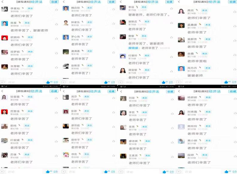 《经济法》课程作为湖南省职业教育首批精品在线开放课程认定项目,通过学习小组参与、学习情景融入、线上自主学习、线下互动PK、技能运用实践等元素运用,充分克服了传统《经济法》课程教学模式的弊端,曾获得湖南省职业教育省级教学成果奖一等奖,并7次获得国家级、省级教学竞赛奖励。采用的微课视频形式亦适合学生线上自主学习。据悉,自2月1日晚上上线不到一天时间,开放班级已经有1670余学生加入学习,并积极与教学团队老师进行互动。