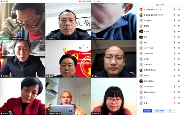 周忠新在会上指出,新型冠状病毒肺炎疫情发生以来,在以习近平同志为核心的党中央坚强领导下,疫情得到有效控制,充分体现了中国特色社会主义制度的优越性,让我们更加增强了“四个意识”、坚定了“四个自信”、明确了做到“两个维护”的重要性。他说,大家一定要按照中央、省委、省社、省教育厅关于新冠肺炎疫情防控的会议精神,以及当地政府的要求,做好疫情防控;同时也希望大家坚定信心和决心,有困难及时跟学校联系,学校是大家坚强的后盾。
