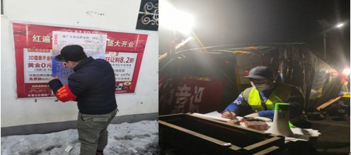 他们的工作时间安排是每天两班倒,分别是白班和晚班,白班从早上8点出勤到晚上8点,晚班从晚8点到第二天早上8点结束。史岳同学主要负责对来往车辆进行消毒和人员体温检测,检查身份证或通行证明,体温正常且消完毒即可放行;对体温检测不合格或者不接受检查的人员进行劝返,老年人通过纸质登记方式进行信息录入;遇到不配合的群众,他耐心地解释和沟通;为了让大家对疫情有所了解并提高防护意识,他给每人发放疫情防疫手册后还带领大家学习防疫知识;他还帮那些被隔离的人员购买生活必需品,送到他们家中。当地群众看到年轻的志愿者工作很辛苦,会送来一些慰问物资,面对群众的理解和支持让他感动在心,工作起来干劲十足。从2020年大年初一到2020年3月5日,他整整工作了42天,他表示,他会一直坚守岗位,直到疫情结束。