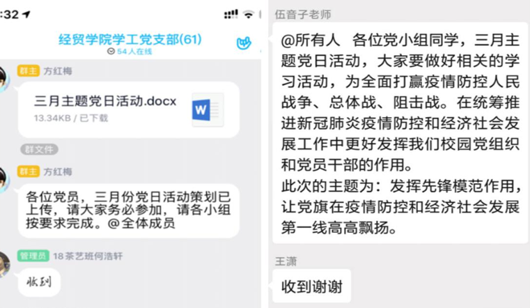 经贸学院学工党支部开展“发挥党员先锋模范作用”“云”主题党日活动