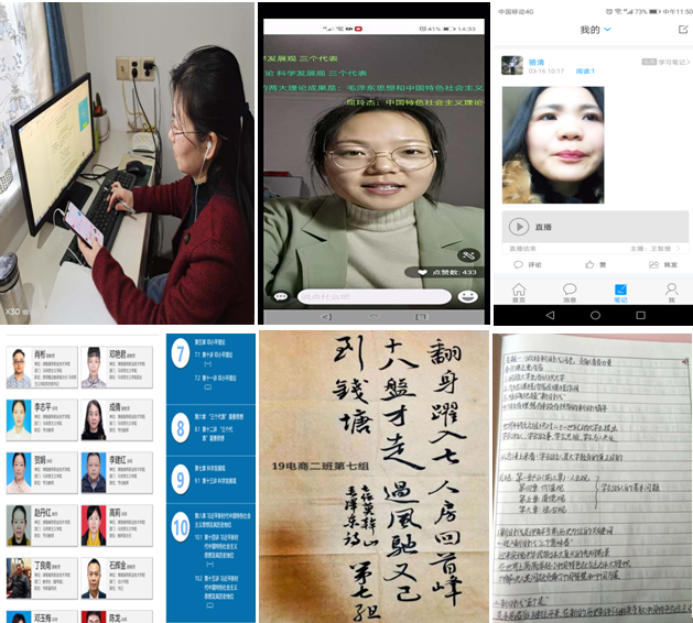 “在学校通知我们上思政概论网课时,我们总认为就是给大家看看视频,或者听听老师‘干讲’,没想到思政老师还能与时俱进将疫情中青年的责任和青年毛泽东敢为人先的爱国情怀结合起来,带进我们的网络课堂,并让我们主动参与,这样的课我们很喜欢”,19级茶艺二班的胡湘梓同学说。思政概论网课开设以来,教学团队组织了多次集体备课,做到了“每一讲网课都有教学方案”,并根据网课的特点开展了“毛泽东的魅力”主题讨论、主席诗词摘抄鉴赏等实践活动,增强了课堂活力、提高了学生的参与度。