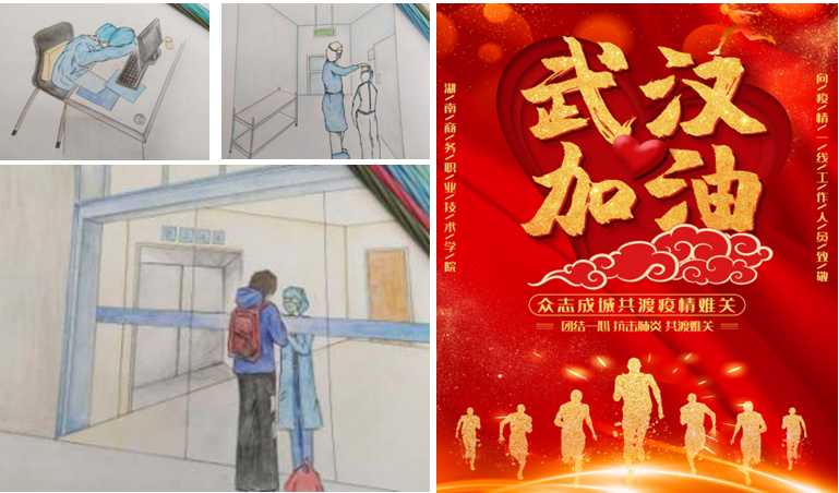 “在今年迎新春时,一场新型冠状病毒正悄然入侵,最终导致数万人感染隔离,以往热闹的街道再不见熙攘人群。人们自觉居家隔离,让疫情迅速得到控制。作为十四亿分之一的‘我’,每一个‘我’,都在为了我们共同的祖国母亲而祈祷,而祝福。凝众智,聚众力,我们终将所向披靡,无坚不摧!”这是今年2月马克思主义学院联合学工部、校团委等部门联合举办的“抗击疫情 为爱发声”主题爱国主义教育实践活动中19财管3班贺雯霞同学作品的节选。此次主题教育活动旨在弘扬爱国精神,讲好“抗疫故事”,活动开展以来得到了同学们的热情响应,活动收到了几百件各类作品:有的同学用画笔描绘下一个个抗击疫情的感人瞬间;有班级开展了“为武汉加油”的海报制作比赛;有同学拍摄了抗疫微电影;有的创作了诗歌、散文等文学作品等等。疫情的寒风中,我们看到了商务学子们为爱呐喊的声音!看到了新时代青年的责任和担当。