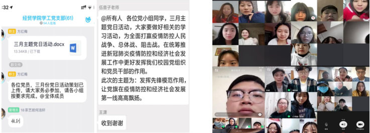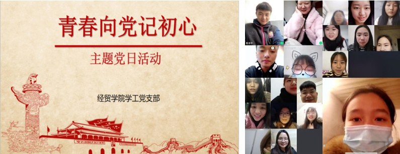 本网讯(通讯员 皮卫)面对来势汹汹的新型冠状病毒肺炎疫情,湖南商务职业技术学院经济贸易学院学工党支部各项工作照???,采取”不聚集、分散学”的方式开展系列“云”党日活动,有效激发广大学生党员的强大动能。