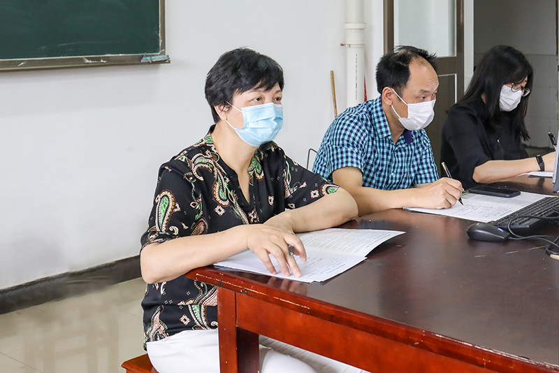 “学生精神面貌不错,精力集中,思维活跃,互动积极……”在实训楼306教室内,听完课后的李定珍正与授课老师交流听课感受,对授课老师认真的教学态度、灵活的教学方法和良好的课堂氛围给予了充分肯定。特殊时期,李定珍还不忘叮嘱师生注意佩戴好口罩,保持适当安全距离,细致做好个人防护措施。