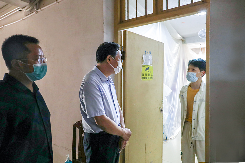 “身体感觉怎么样?”在学校安排的隔离观察住所,李定珍认真询问同学们的身体状况、饮食起居情况,详细查看了宿舍的卫生通风、消毒杀菌、体温监测情况,鼓励同学们保持良好心态,精心修养,以积极的心态战胜疾病,并祝同学们早日康复。