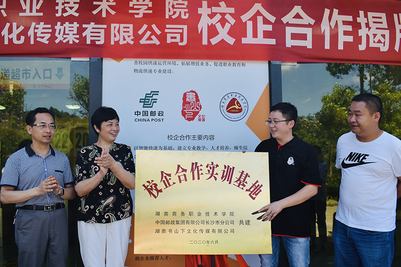 上午10时许,在师生共同见证下,湖南商务职院校长李定珍与书山下文化传媒公司总经理郑军共同为基地揭牌。李定珍表示,智能物流综合服务中心的投入使用有望整合多方物流服务资源,改善校园快递运营环境,有效遏止快递车辆随意乱窜给校园带来的安全隐患,进一步规范快递配送服务,以快递末端配送为载体搭建起全面、智能、高效的综合型学生服务平台。她希望,校企双方倍加珍惜合作机会,真抓实干,齐心协力共谋发展。