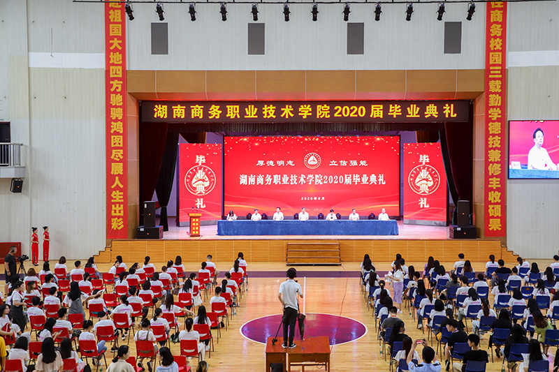 这注定是一个特殊的毕业季。6月23日,在常态化疫情防控下,湖南商务职业技术学院2020届毕业典礼采取了“线上+线下”模式,共同见证3040名同学圆满完成学业。党委书记周忠新、校长李定珍、党委副书记廖志刚、副校长廖良林、纪委临时负责人姜华斌、副校长禹明华、易兰华出席仪式。
