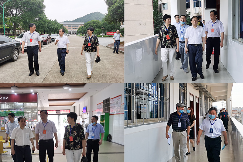 吉首大学校长廖志坤在校党委书记周忠新、院长李定珍的陪同下巡视了监控指挥中心、标准化考场、食堂等场地,对考场秩序、考生个人防护、食堂餐饮保证等工作进行了细致检查。廖志坤对我校高标准、严要求的考务工作给予了高度肯定,对坚守各岗位的考务工作人员表达了诚挚的慰问。