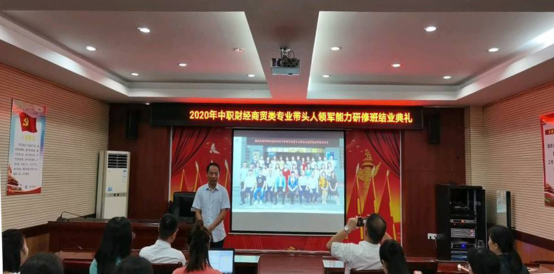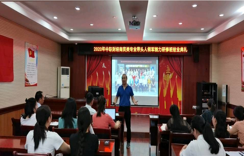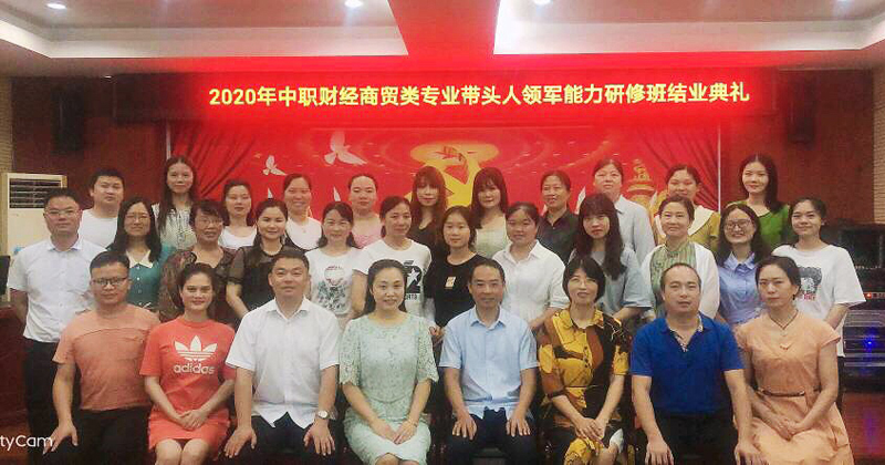 8月1日下午,“国培计划”(2020)——中职财经商贸类专业带头人领军能力研修班结业典礼在我校举行,标志着由我校承办的第四期国培项目培训班顺利结业。经济贸易学院党总支书记谢虎军、经济贸易学院副院长陈学忠(主持工作)、教务处副处长张丽莉、国培班主任王娜玲与30位培训学员参加了结业典礼。