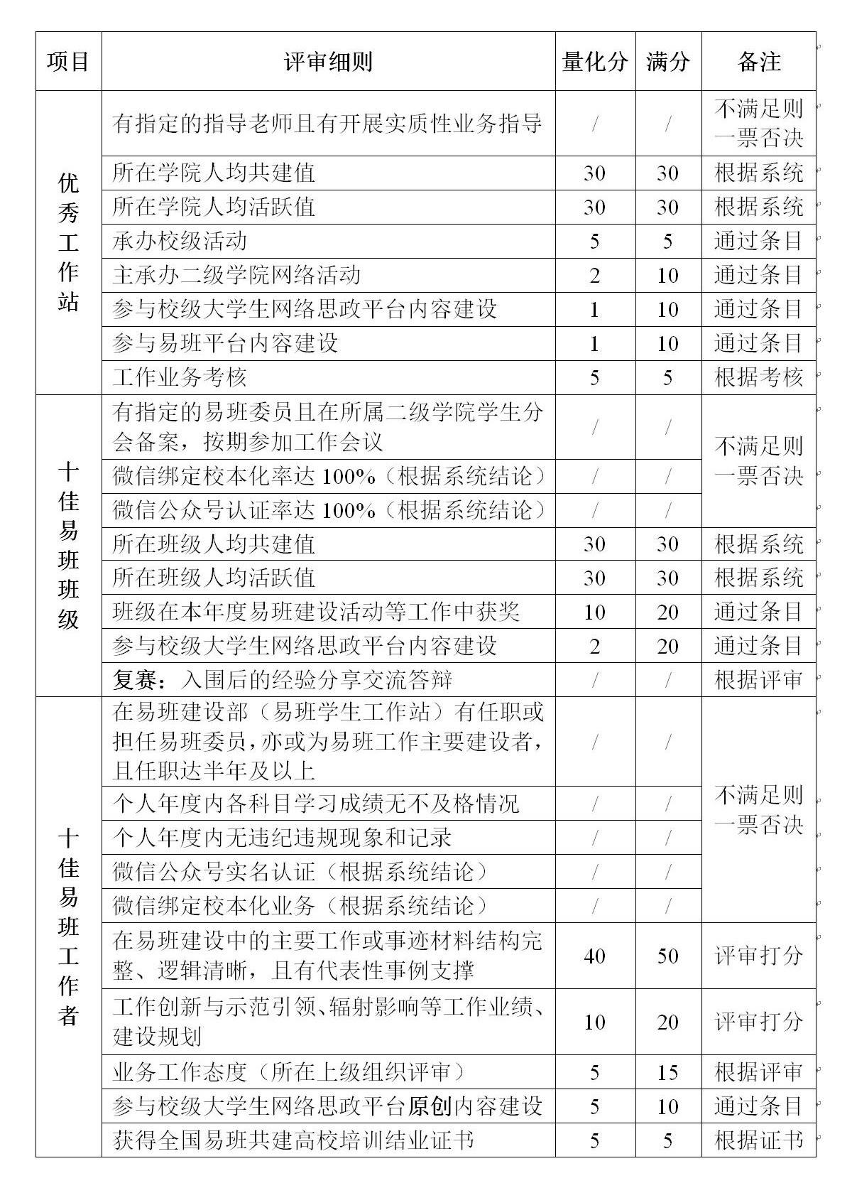 备注:申报集体或个人需对标填报申报材料,以上评审细则最终解释权归校易班发展中心所有。