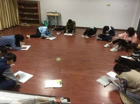 先给大家睹一睹我们的风采,中间这位席地而坐的就是本次团体心理辅导的指导老师,来自心理健康教育中心的钟正亮老师。