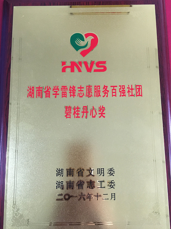 我院青年志愿者协会荣获“湖南省学雷锋服务百强社团”称号