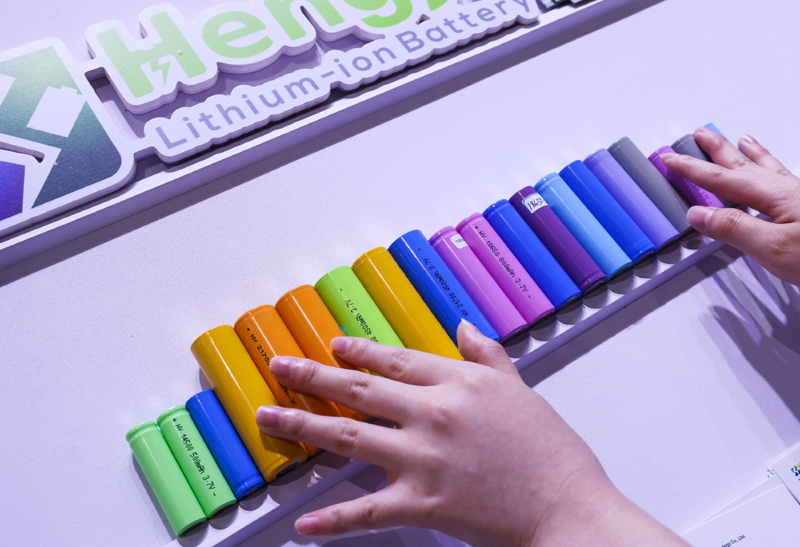 参展商在第135届广交会新能源展区布置锂电池展品(2024年4月15日摄)。(新华社记者 刘大伟/摄)