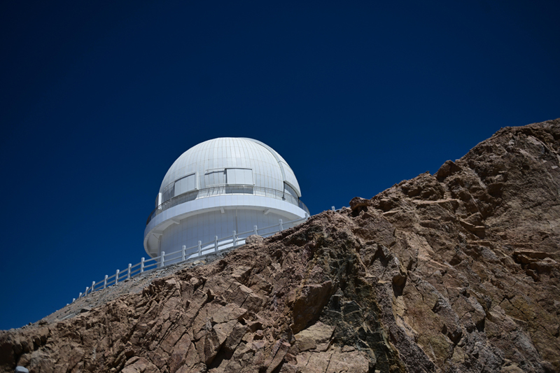 这是在青海省海西蒙古族藏族自治州茫崖市冷湖镇赛什腾山拍摄的中国科学技术大学和中国科学院紫金山天文台联合研制的大视场光学成像望远镜——墨子巡天望远镜(2024年4月20日摄)。(新华社记者 张龙/摄)